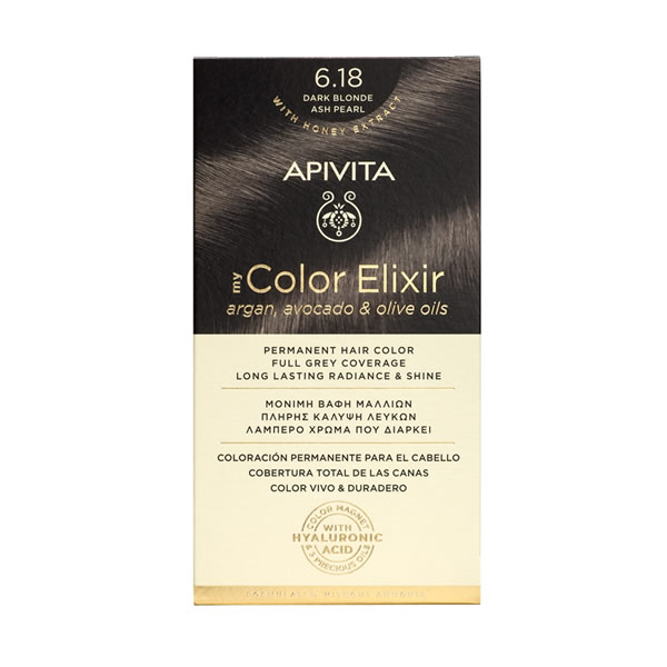 Apivita My Color Elixir, Βαφή Μαλλιών Ξανθό Σκούρο Σαντρέ Περλέ – 6.18