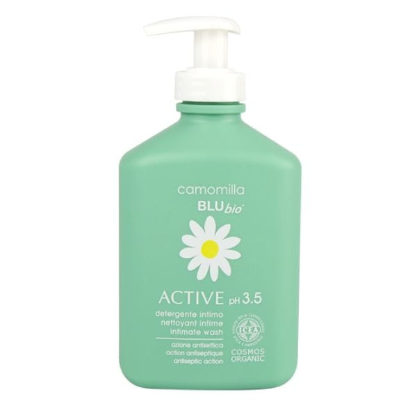 Το Camomilla Blu Bio Active Intimate Wash είναι μία βιολογική λοσιόν καθαρισμού για την ευαίσθητη περιοχή με χαμομήλι και αλόη βέρα, που δρα κατά του κνησμού και των ερεθισμών.