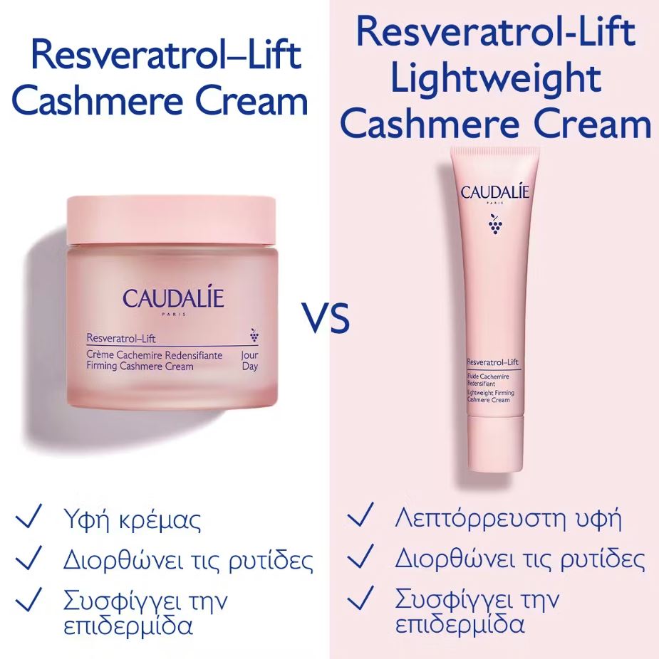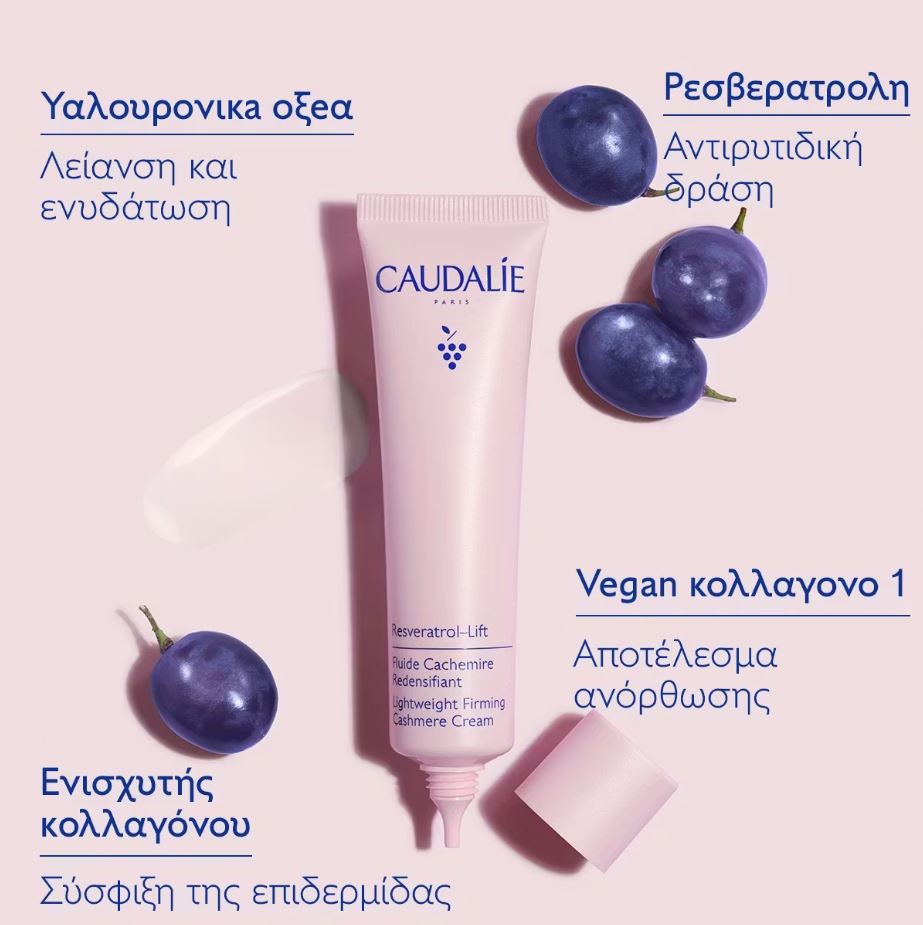 Caudalie Resveratrol-Lift Lightweight Firming Cashmere Cream Αντιγηραντική & Συσφικτική Κρέμα Προσώπου Ημέρας με Υαλουρονικό Οξύ & Κολλαγόνο, 40ml