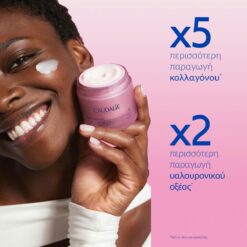 Η Firming Night Cream λειαίνει τις ρυτίδες κατά τη διάρκεια της νύχτας για ξεκούραστα χαρακτηριστικά, πιο σφριγηλή επιδερμίδα και πιο λαμπερή όψη στο πρωινό ξύπνημα. Στον πυρήνα της καινοτομίας βρίσκεται το Vegan Κολλαγόνο 1, κολλαγόνο φυτικής προέλευσης, σε συνδυασμό με μια αποκλειστική πατέντα αντιγήρανσης (Ρεσβερατρόλη αμπελιού, υαλουρονικά οξέα και vegan ενισχυτής κολλαγόνου) για την ενεργοποίηση και των 3 τύπων κολλαγόνου.