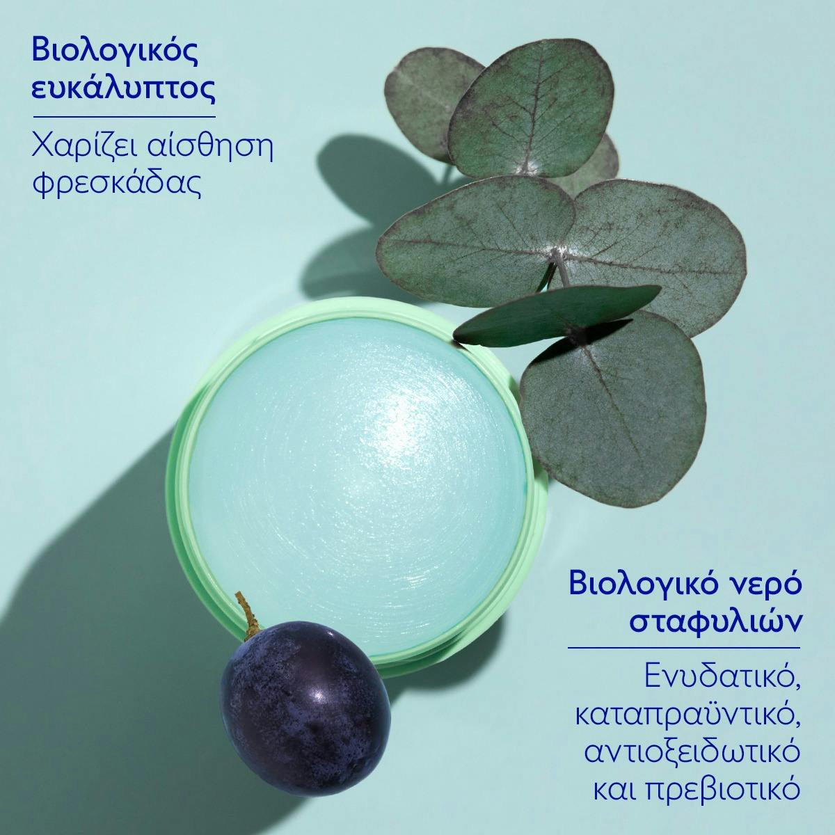 - Βιολογικός ευκάλυπτος : 100% φυσικής προέλευσης, χαρίζει αίσθηση φυσικής φρεσκάδας όλη την ημέρα.