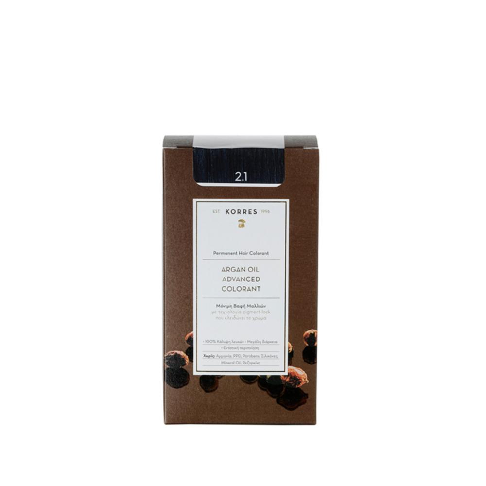 Korres Argan Oil Advanced Colorant Βαφή Μαλλιών Μαύρο Μπλε – 2.1
