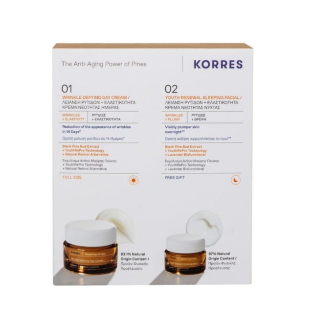 Το Σετ περιέχει: Black Pine Primus Λείανση Ρυτίδων + Ελαστικότητα Κρέμα Νεότητας Ημέρας 40ml + ΔΩΡΕΑΝ Black Pine Primus Λείανση Ρυτίδων + Ελαστικότητα Κρέμα Νεότητας Νύχτας 15ml