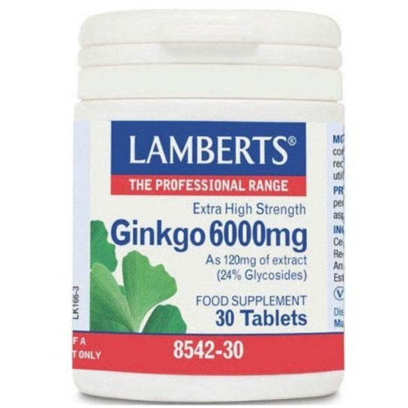 Lamberts Ginkgo Biloba Extract 6000mg για Μνήμη & Συγκέντρωση, 30 Ταμπλέτες