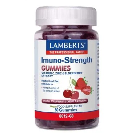 Τα ζελεδάκια Imuno-Strength της Lamberts αποτελούν έναν μοναδικό συνδυασμό ψευδαργύρου, βιταμίνης C και τιτλοδοτημένου εκχυλίσματος καρπών κουφοξυλιάς (σαμπούκος / elderberry).