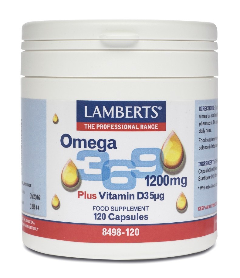 Lamberts Omega 3 6 9 1200mg Plus Vitamin D3 5μg Έλαιο Βοράγου & Ελαιόλαδου 1200mg, 120 κάψουλες