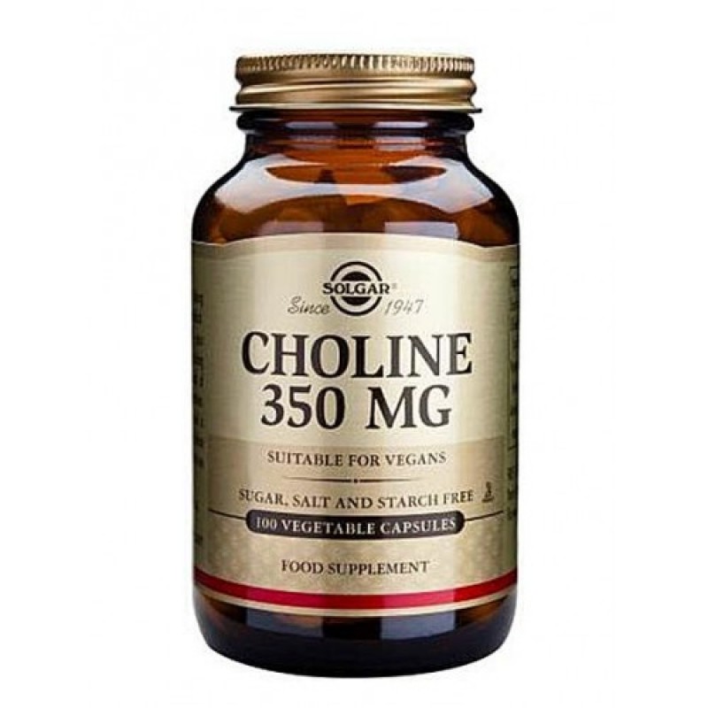 Το Solgar Choline 350 mg Vegetable Capsules περιέχει Χολίνη, ένα μακροθρεπτικό συστατικό που παίζει σημαντικό ρόλο στη λειτουργία του ήπατος και τη διατήρηση υγιούς μεταβολισμού. H Χολίνη είναι υδατοδιαλυτό ιχνοστοιχείο που σχετίζεται με άλλες βιταμίνες, όπως αυτές του συμπλέγματος Βιταμίνης Β. Παρομοίως με τις Βιταμίνες Β, η χολίνη ενδυναμώνει τη διεργασία μεταβολισμού θρεπτικών στοιχείων, όπως υδατανθράκων, πρωτεϊνών και λιπαρών, σε ενέργεια. Η μεταφορά λίπους, χοληστερόλης και τριγλυκεριδίων, από το συκώτι στα κύτταρα του σώματος απαιτεί επίσης χολίνη και ενεργεί για τη διατήρηση του συκωτιού χωρίς συσσώρευση λίπους. Η χολίνη συνθέτει το δομικό στοιχείο του λίπους, και άρα μπορεί να βρίσκεται σε πηγές τροφίμων που περιέχουν λιπαρά, όπως το συκώτι, τα λιπαρά ψάρια, τα λαχανικά και το μοσχαρίσιο κρέας.