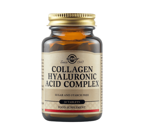Η SOLGAR κατανοεί ότι η καλή διατροφή είναι το ζητούμενο για όμορφο δέρμα. Έτσι δημιουργήσαμε το Collagen Hyaluronic Acid Complex, στοχεύοντας στη θρέψη του δέρματος. Το υαλουρονικό οξύ είναι μια ουσία που βρίσκεται σχεδόν σε όλα τα κύτταρα του ανθρωπίνου σώματος. Το υαλουρονικό μπορεί να βοηθήσει στη διατήρηση των βέλτιστων επιπέδων νερού στο χόριο του δέρματος. Καθώς γερνάμε, τα επίπεδα του υαλουρονικού οξέος στο δέρμα ελαττώνονται. Αυτή η απώλεια υαλουρονικού, λόγω της ηλικίας, μπορεί να συντελεί καθοριστικά στην εμφάνιση λεπτών γραμμών και την απώλεια σφριγηλότητας.
