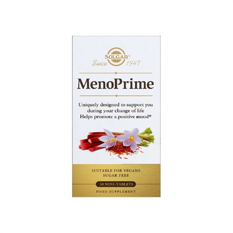 Το SOLGAR MenoPrime είναι ένας μοναδικός συνδυασμός δύο κλινικά μελετημένων βοτανικών εκχυλισμάτων, του Κρόκου (affron®) και του Σιβηριανού Ραβέντι (Err-731®), που προσφέρει μη-ορμονική, φυτική υποστήριξη για τη διαχείριση των συνθηκών που βιώνουμε κατά την εμμηνόπαυση και την ενίσχυση της καλής διάθεσης.